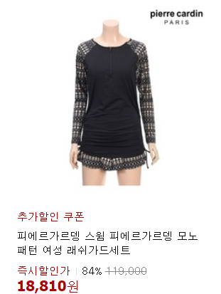87%~ 할인! 피에르가르뎅 시스루 래쉬가드