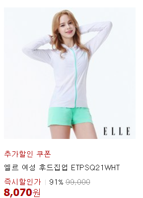 91%~ 할인! 엘르 서퍼 후드집업