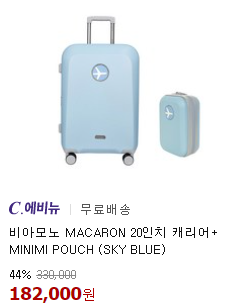 (비아모노) 캐리어 MACARON 20인치 캐리어+ MINIMI POUCH 44% 할인
